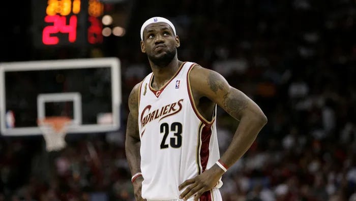 LeBron James rolled into Cleveland as a teenager in 2003 and immediately shouldered the hopes and dreams of a championship-deprived city. Year-by-year, he cleared one hurdle after the next—Rookie of the Year in ‘04, All-Star in ‘05, MVP candidate in ‘06—but to mount his first deep playoff run, surely he’d need help. Larry Hughes, the versatile young shooting guard the team had paid handsomely to be LeBron’s sidekick, disappeared completely in the series, averaging a paltry 7 points with as many turnovers as assists. The longest-tenured Cavalier Zydrunas Ilgauskas had been waiting a decade to play meaningful playoff basketball, but his body was already betraying him at only 31 years old.