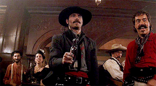 The most dangerous outlaws in western filmdom are deadly shooters with incredible technical skill, able to take any challenger down in a duel or intimidate them from even trying. Tombstone’s big bad is Johnny Ringo, his incredible pistol work remaining a parlor trick and largely theoretical threat until the movie’s climactic duel, in which Doc Holliday—a recently bedridden consumptive—confronts the “deadliest pistoleer since Wild Bill” as a heavy underdog. Yet it’s here we see the fragility of life in the Wild West—a world in which a seemingly invincible gunner can be shot dead in an instant, too high-strung to deliver in that high-pressure situation.